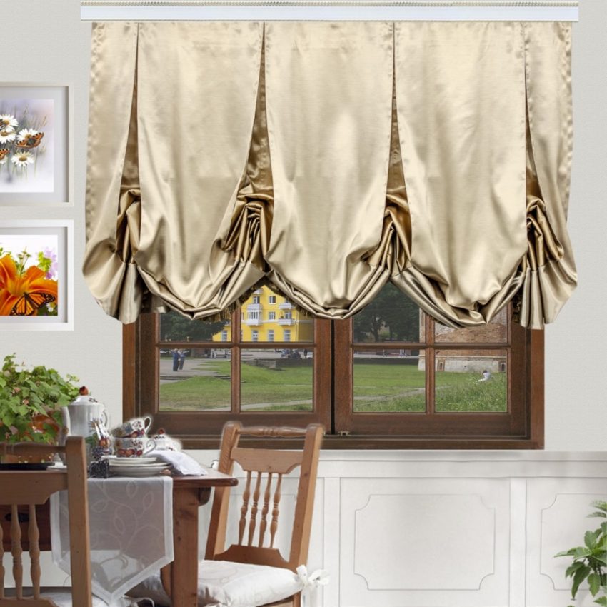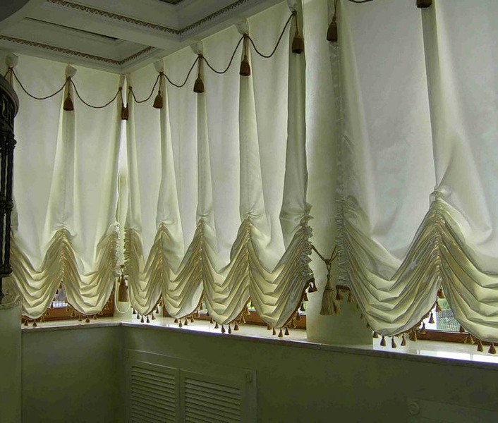 Для этого вида штор необходим карниз с подъёмным механизмом, в результате полотно выглядит при подъёме пышным и воздушным.