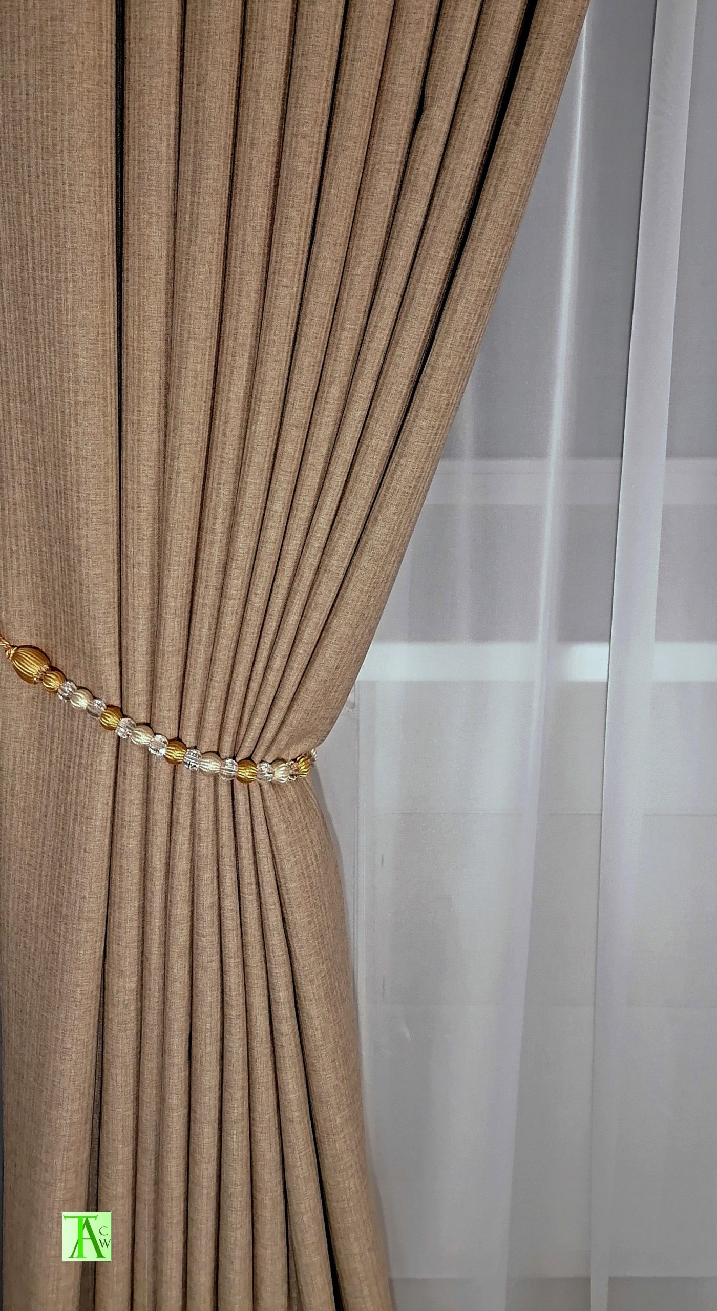 Кулиса для крепления на круглом карнизе. Верх обработан шторной лентой для крючков.